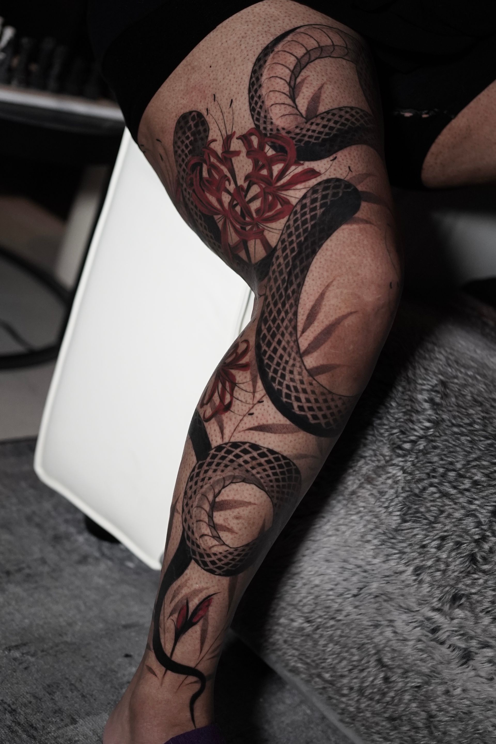 I quote tattoos either by the piece (for smaller scale work), or by the amount of day sessions (for larger scale work). I will always provide a price range, which is dependent on the final size and complexity of the design.